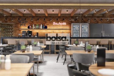 Piso térreo, 1 cozinha com armários e lava louça , lavanderia, banheiro social com chuveiro, escritório com entrada independente, e lavabo, uma copa.