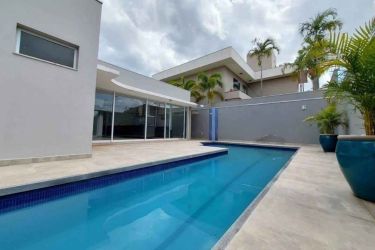 Esta residência de alto padrão oferece luxo e exclusividade em cada detalhe. Com 397,44 m² toda térrea, com 4 suítes, sala ampla 2 ambientes com pé direito alto, lavabo, cozinha gourmet, despensa e garagem. A área externa é perfeita para entretenimento, com piscina em formato de raia e churrasqueira.